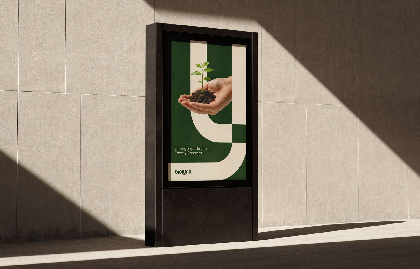 Biolynk renewable energy company logo branding project sign mockup